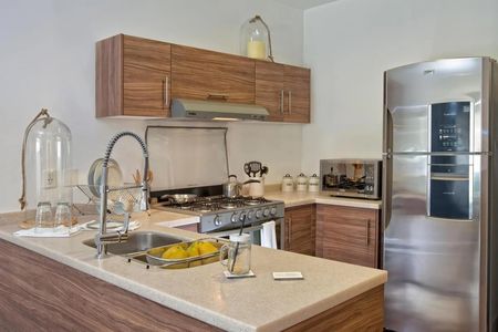 - Cualquiera de nuestros departamentos se entregan sin muebles, pero incluyen el siguiente equipamiento: cocina integral con estufa, campana, microondas, refrigerador, centro de lavado y secado, minisplit frío/calor, persianas y clóset.