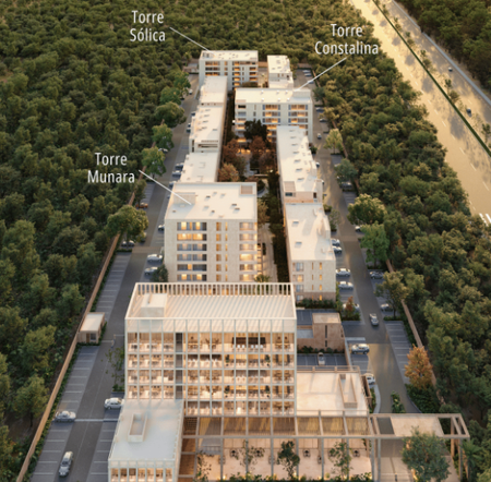 Distrito Country es un desarrollo de 282 departamentos, plazas comerciales y oficinas.