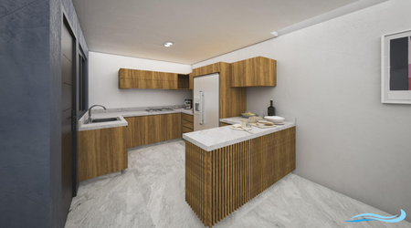 Cocina Integral con cubierta de granito ó similar (No incluye estufa ni campana).