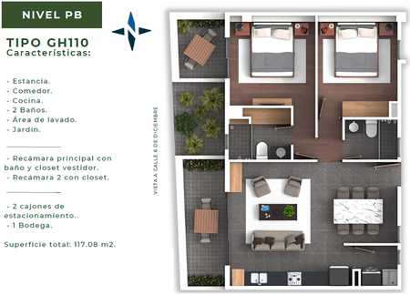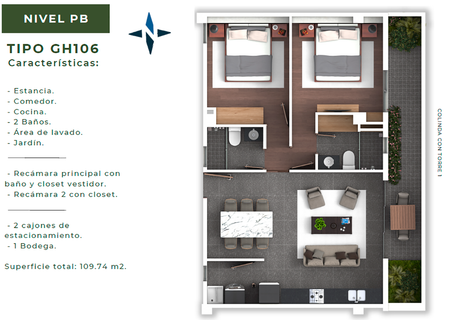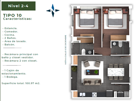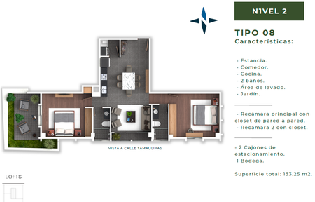 - Estacionamiento: 1 - 2 cajones.