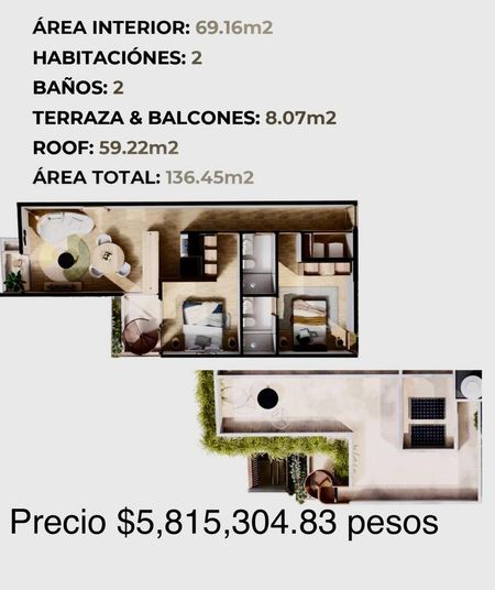 Departamentos desde $3'940,717.74 hasta $5'815,304.83 y de 61.86m2 y hasta 136.45m2. Son 15 departamentos distribuidos en 4 niveles. Constan de 2 recámaras, 2 baños completos, 1 lugar de estacionamientos, muy iluminados y con ventilación natural, tienen balcón y terraza privada, roof garden privado, Co Working, elevador, vigilancia 24/7. Listos para estrenar.