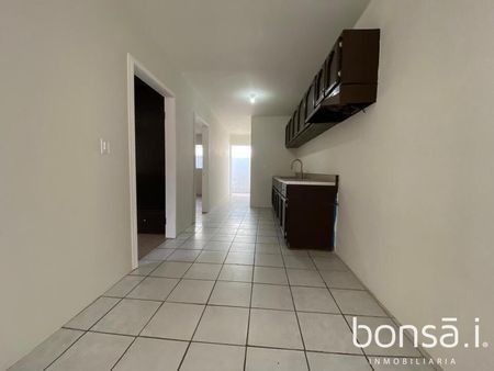 Departamento 2. Cuenta con 1 recámara con closet, 1 baño completo, sala, cocina integral, comedor, 1 cuarto de lavar y un pasillo de servicio en la parte trasera.