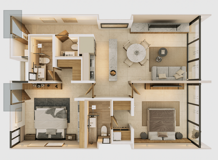 En este desarrollo hemos fusionado diseño contemporáneo y comodidad. Cada departamento ha sido concebido para maximizar el espacio y la luz natural, garantizando un ambiente acogedor: detalles estéticos que reflejan un estilo de vida moderno y sofisticado.