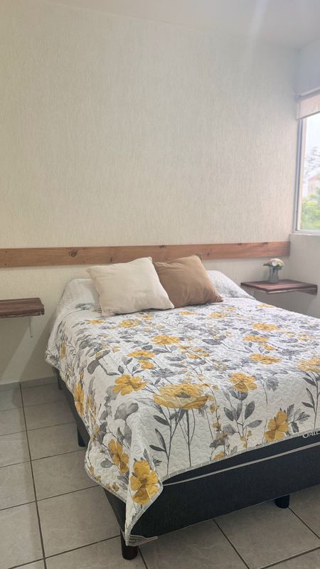 - La 2da. recamara con cama matrimonial, closet de madera, repisas y una decoración