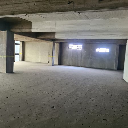 Planta baja con doble altura, estructura de columnas de carga, trabes y losas de concreto armado, áreas abiertas para libre diseño, espacio para aproximadamente 60 vehículos, zona de carga con doble altura.