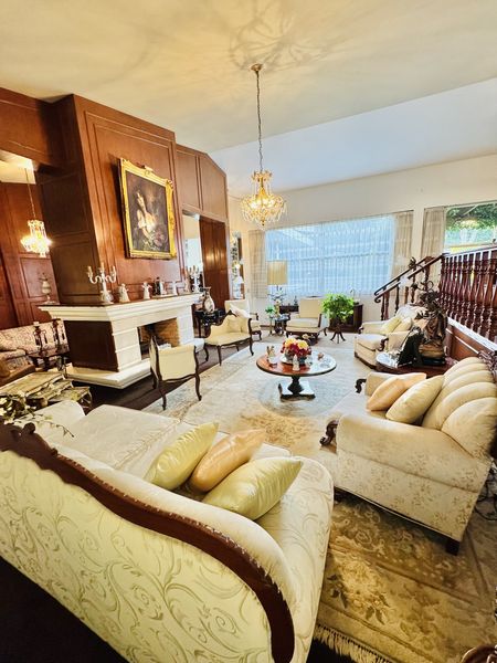 Casa inspirada en los palacios de arquitectura neoclásica europea, edificada sobre una cabecera de manzana con impresionante 3 frente a diferentes calles. Recinto de residencia señorial con distinguida marquesina con escalinata, balaustros neoclásicos, acompañado de Jardines a ambos lados. Frente al parque de los eucaliptos y a la vuelta de la gran glorieta de patinaje de San Miguel.