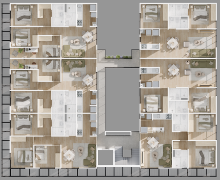 El edificio tiene 44 departamentos distribuidos en dos torres.