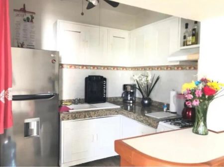• Cocina equipada :con estantes, ventilador y vista a la alberca