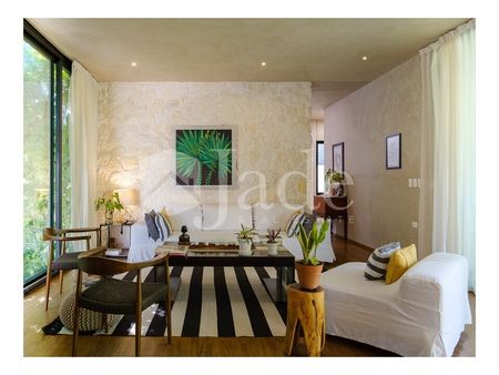 En el área privada, la casa ofrece dos recámaras secundarias, cada una equipada con closet y aire acondicionado, compartiendo un baño completo. La recámara principal es un oasis de tranquilidad, con un closet vestidor y un baño completo en suite.