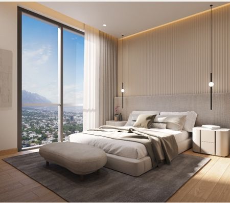 Exclusiva torre de Departamentos en Preventa, 23 niveles y un total de 76 unidades desde 133 hasta 199 m2. Departamentos de 2 a 3 recámaras, área social, terraza y cuarto de servicio, con espectaculares vistas a la Sierra Madre.