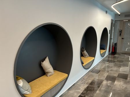 Booths tipo coworking ideales para reuniones rápidas o trabajo individual Amenidades del edificio: