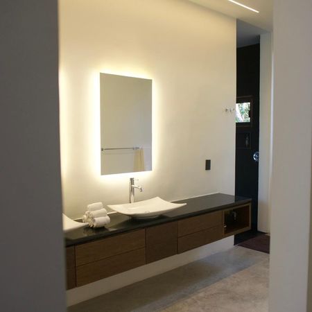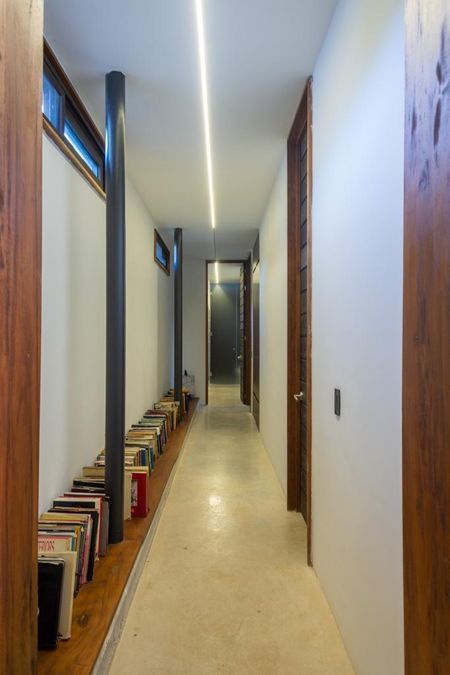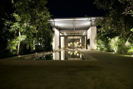 Casa habitación situada en Puerto Morelos, Quintana Roo, México. Esta bella CASA BIOCLIMÁTICA flota entre la densa selva de Puerto Morelos concebida como un solo elemento lineal. Su ubicación precisa dentro del terreno aprovechan los vientos dominantes y la luz solar dando como resultado su funcionamiento bioclimático.