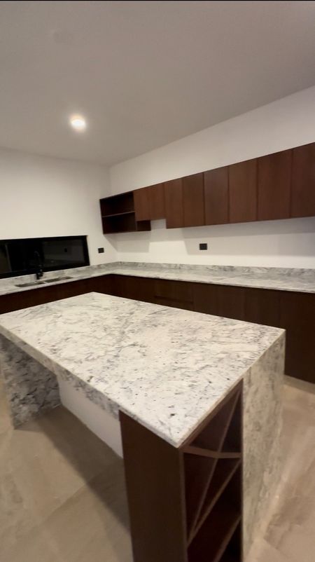 - Recubrimiento de superficies de mesetas en cocina de granito blanco Roma