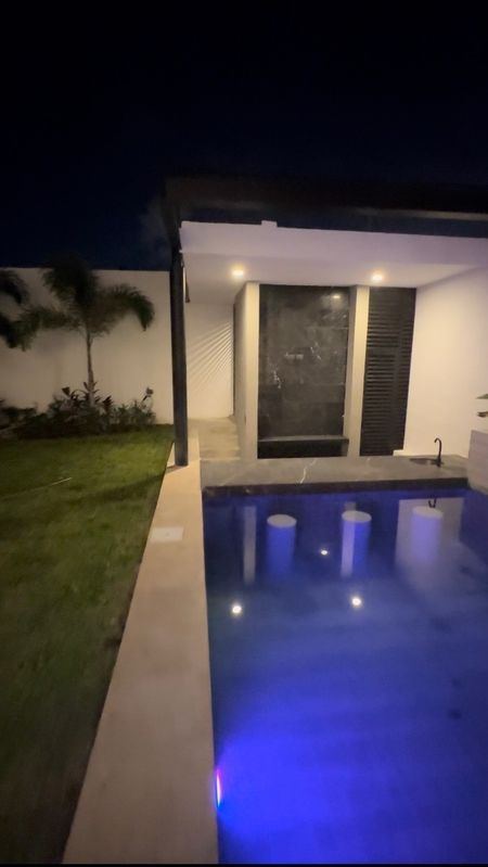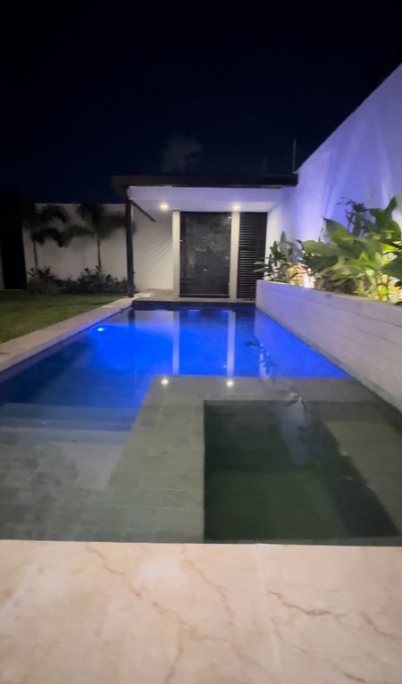 - Piscina con iluminación RGB, jardín lateral, jacuzzi y asientos