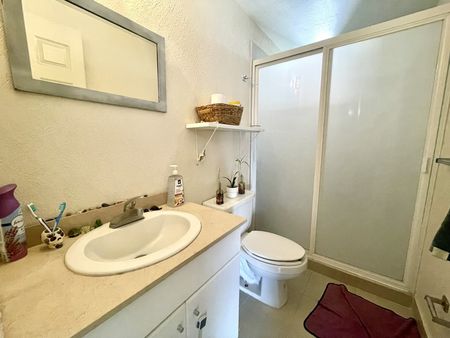 Cuenta con 2 recámaras y 2 baños completos (uno dentro de la recámara principal). Área de lavado, 2 estacionamientos y vigilancia 24/7,