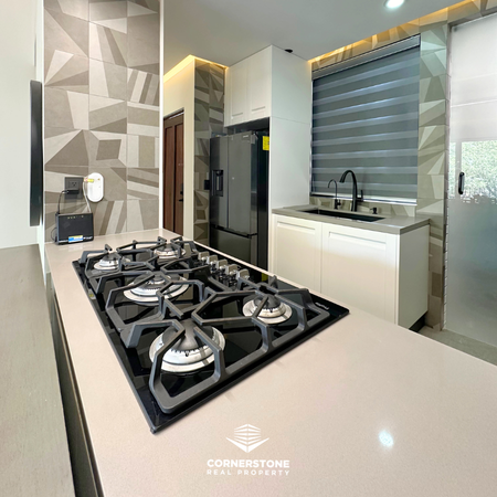 Cocina con barra de cuarzo italiano