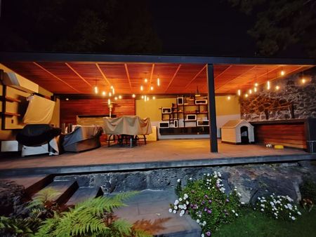 Terraza 120 mts con Asador profesional con Pergola de Madera y con CristalesTemplados