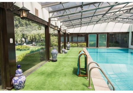 Magnífica alberca con dos amplios vestidores , jardines de ensueño .