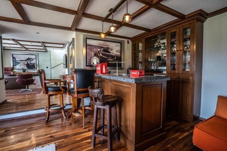 desayunador, cocina equipada, salón de juegos, 3 terrazas, estacionamiento cerrado para dos carros y sin techar 4 carros. Cámaras de video vigilancia, calefacción de piso radiante, chimenea y paneles solares