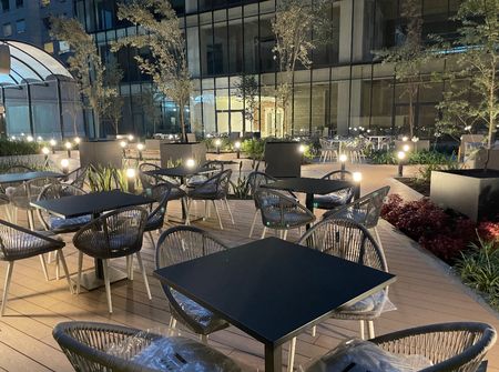Terraza común, ideal para reuniones o descanso.