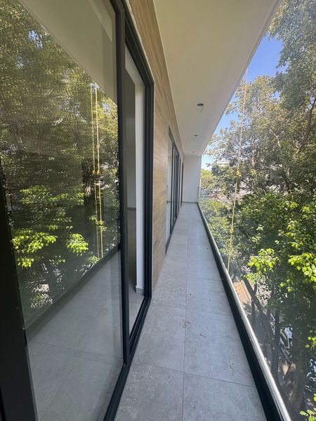 Disfruta de dos lugares de estacionamiento y un encantador balcón exterior de 11 m², donde podrás relajarte y disfrutar de las vistas. El desarrollo ofrece excelentes amenidades, como un patio central, vigilancia 24/7, elevador, circuito cerrado, cisterna, estacionamiento para bicicletas e interfon.