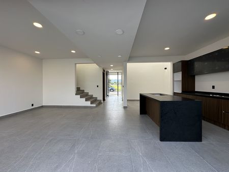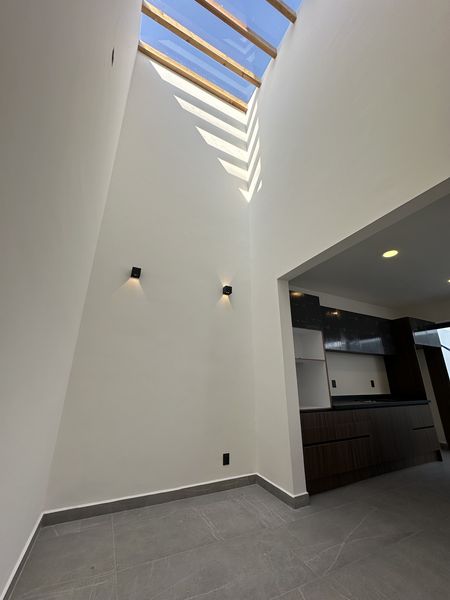 En la planta baja, el diseño abierto y fluido te da la bienvenida. La sala y una amplia estancia conectan de forma elegante con la cocina, que está super equipada para los amantes de la gastronomía. Disfruta de un café por las mañanas en el desayunador de doble altura, un espacio que te hará sentir amplitud y luminosidad. Para tu comodidad, la planta baja incluye un estudio, un baño completo y una práctica bodega para almacenamiento.