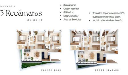¡Los departamentos en PB volaron y ya no están disponibles! Pero aún tenemos en los niveles 1, 2 y 3, diferentes modelos de 2 y 3 recamaras. No te pierdas la oportunidad de ser parte de este proyecto.
