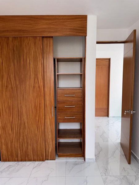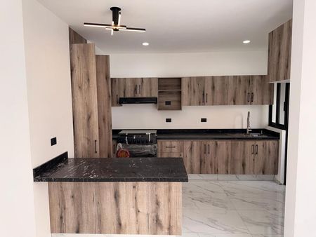 Estrena en fraccionamiento Zimalta casa con 3 recámaras, la principal con vestidor y baño completo; además de un estudio en planta baja, con baño completo. La cocina tiene acceso al área de servicio en el patio y a una alacena para despensa.