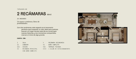 2 RECÁMARAS: 66 m2 (18 unidades)