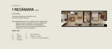 1 RECÁMARA: 46 m2 (40 unidades)
