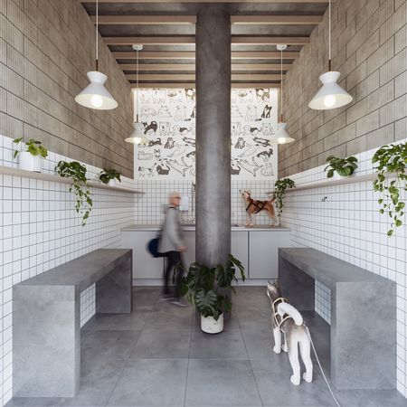 AMENIDADES: Patio Central, terraza con fogateros, spa y estética animal, mirador, cancha polideportiva, gym, muro de escalada, carril de nado contra corriente, alberca recreativa, cine al aire libre, karaoke, coworking y espacio para relajación, meditación y descanso.