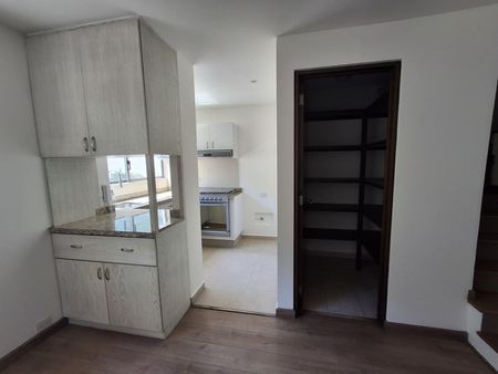 Entrando en tu automóvil se disponen de 2 lugares de estacionamiento, al subir por las escaleras se llega a sala comedor, cocina, alacena.