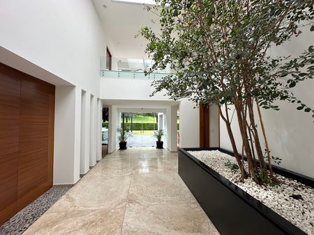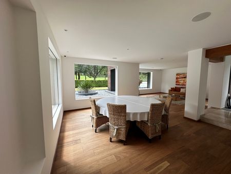 Casa en una de las exclusivas calles del Fraccionamiento, ubicada en el fairway del hoyo once, consta de Hall, cuarto de juegos, baño completo, recamara de visitas, sala de T.V.,, sala, comedor, cocina integral, terraza con asador, jardín amplio, en P.A.: Recamara principal con vestidor y baño, estudio-gimnasio, dos recamaras con vestidores y baño cada una, calefacción hidrónica, cisterna, bodega, garaje para 4 autos techados. Área de lavado, cuarto de servicio.