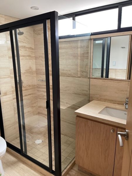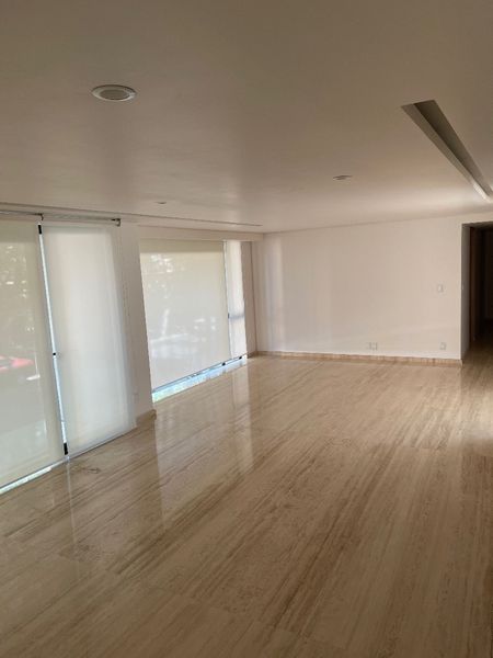 El departamento cuenta con pisos de mármol en grandes placas en áreas comunes y en recamaras pisos de fina madera. Persianas black out.