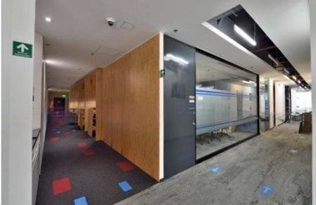 La oficina cuenta con recepción, sala de juntas, varios privados, área de trabajo, área de comida.