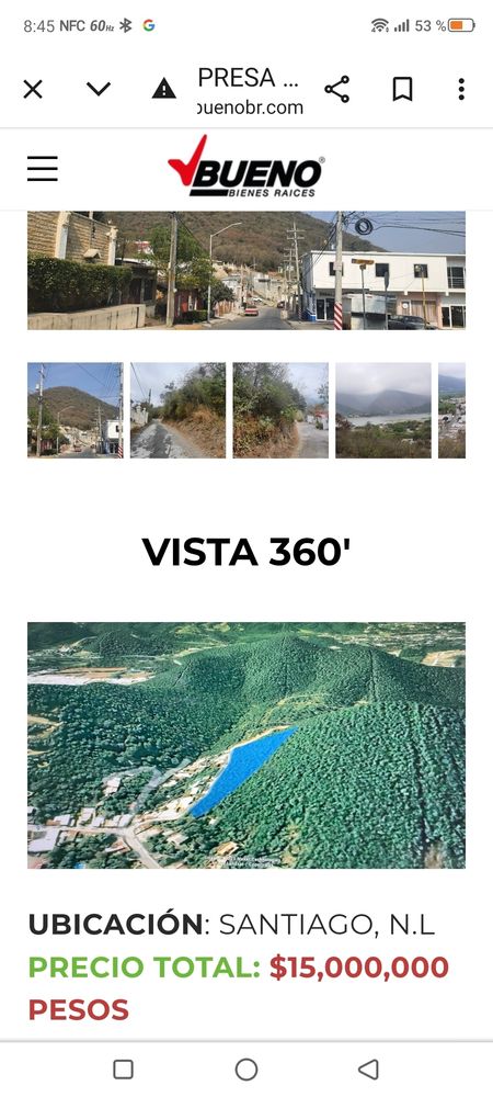 DESCRIPCIÓN: EXCELENTE INVERSION PATRIMONIAL CON ALTA PLUSVALÍA IDEAL PARA DESARROLLO VERTICAL CON DEPARTAMENTOS O 5 CASAS ESCALONADAS HABITACIONALES TODAS CON VISTA A LA PRESA LA BOCA. UBICACION PRIVILEGIADA EN UNA LOMA EN SANTIAGO.