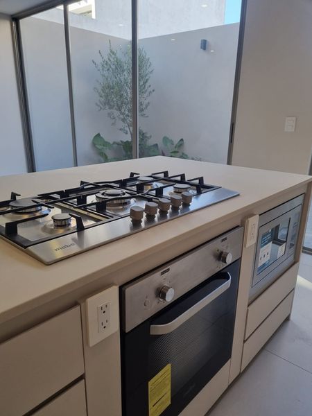 Acabados de primera: carpintería en encino americano, puerta principal de parota, preparación para A/A en recámaras, iluminación LED, cisterna de 5,000 L, tanque estacionario, boiler de paso, parrilla, horno, microondas y campana incluidos, además de cristales templados de 9 mm en baños.