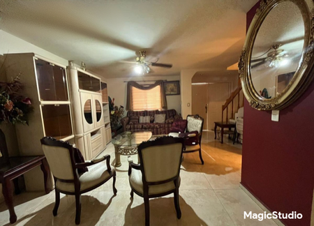 El segundo nivel te recibe con dos confortables recámaras, cada una con closet y baño completo, mientras que la recámara principal destaca por su exclusivo jacuzzi, ofreciéndote un espacio de relajación único. Las recámaras están elegantemente alfombradas para mayor comodidad. Además, cuenta con un práctico cuarto de lavar y estacionamiento para dos autos.