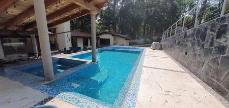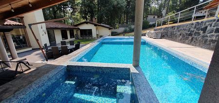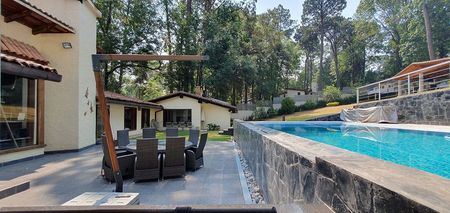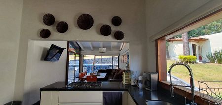 Para los invitados hay un bungalow aparte con otras tres recámaras, dos abajo y la principal con terraza y vista amplia al jardín en la parte alta. Muy pero muy disfrutable y con varios espacios de estacionamiento incluso para la visita. Está en una de las principales calles de Avándaro pero que es tranquila. Caminas al Fresko y a la zona comercial con sus tiendas y restaurantes así que tanto tú como tus chicos pueden estar tranquilos de ir a pasear ahí y regresar sin auto. Ese zona tiene mucha plusvalía, es muy solicitada.