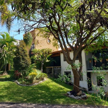 Hermosa Finca en terreno de 3,004 mts2 con espectacular vista al campo de Morelos; de estilo Mexicano contemporáneo, adobe, cantera,herrería, bonito jardín tropical; dentro de la casa principal 3 recamaras con baño cada una y en el exterior 2 bungalows para visitas muy bien ubicados y con calidad hotelera en todas sus amenidades , cocina equipada estilo europeo, alacena y cuarto de lavado de gran tamaño, bodega y cuarto de juegos, jacuzzi y alberca con caldera. Cuarto de servicio para jardinero y un espectacular espacio de 2,000 mts2, de terreno apto para criar gallinas, perros o sembrar huerto.