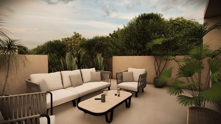 Estos hermosos departamentos de 1 y 2 recámaras, junto con los penthouses, ofrecen distintos diseños y distribuciones para adaptarse a sus necesidades, incluyendo la opción "flex" para agregar una recámara adicional. Ofrecen un diseño amplio y abierto, con ventanas de piso a techo que permiten la entrada de abundante luz natural. Todas las residencias incluyen cocina completamente equipada, luminosa sala de estar y comedor, y un balcón o terraza privada. Los penthouses disponen de un rooftop con jardín, jacuzzi, área de descanso con sombra y asador, ideal para comidas al aire libre. Estos departamentos tienen pisos de loseta y acabados de alta calidad, diseñados para ser duraderos y fáciles de mantener. Se ofrecen a la venta sin amueblar, pero equipados con aire acondicionado.