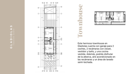 Este hermoso townhouse en Gladiolas cuenta con garaje para 2 coches, 2 recámaras con closet, vestidor y baño, y una cocina vestida. Además, podrás disfrutar de la alberca, aire acondicionado en las recámaras y un área de lavado semi-techada.