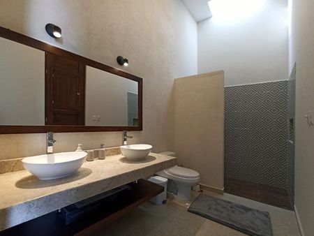 Cuenta con 2 habitaciones secundarias las cuales comparten un hermoso baño de finos acabados y canceles de cristal templado.