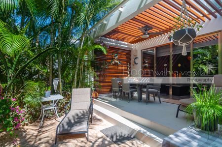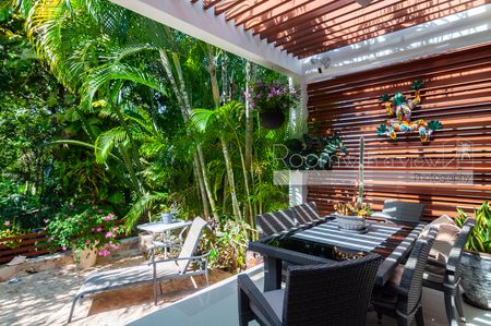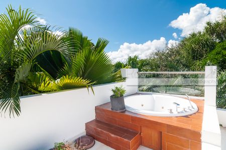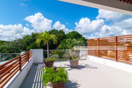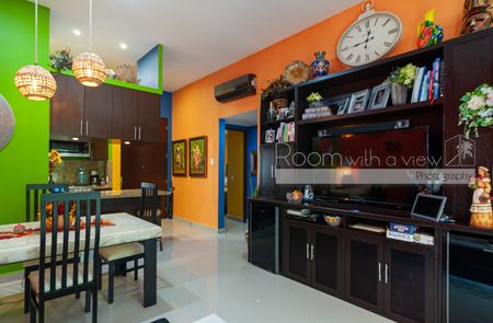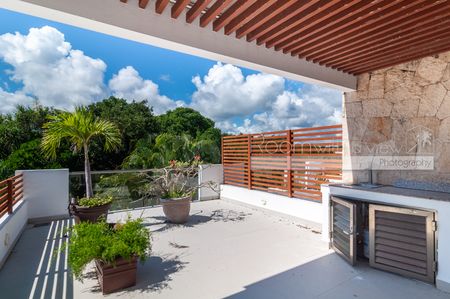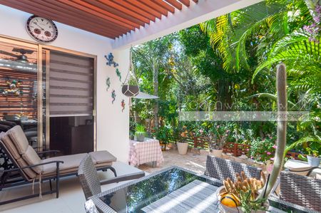 En el interior, la distribución de 2 recámaras y 2 baños se siente luminosa, abierta y diseñada para la vida práctica. La amplia sala se integra de manera fluida con una gran terraza techada que cuenta con alberca privada y bellos jardines tropicales. En el nivel superior, una terraza privada en el rooftop con jacuzzi ofrece un espacio tranquilo para relajarse, contemplar las estrellas y descansar. Amueblada y decorada con coloridos toques del Caribe mexicano, esta villa está lista para disfrutarse desde el primer día.