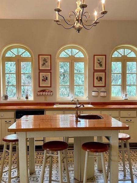 El original proyecto consta de 3 niveles. En planta baja cuenta con ingreso principal, medio baño de visitas, comedor amueblado finamente, espectacular cocina en madera, con vista al jardín, cuenta con barra. Sala con chimenea, linda terraza y dos recamaras amplias cada una con closet y baño. Área de lavado, cuarto de servicio con baño y cochera eléctrica para motos, carros y demás vehículos. En planta alta consta de área de estudio y biblioteca, 3 recamaras, la principal con baño y walking closet, dos recamaras con closet y baño. Amuebladas finamente, con relajantes vistas al jardín. Cada recamara tiene su chimenea, en total hay 7 chimeneas en la casa.