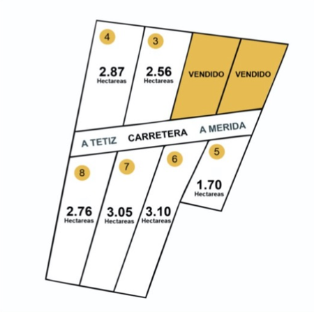 Se vende polígono de 20 hectáreas dividido en dos partes, a pie del corredor industrial de Hunucmá.