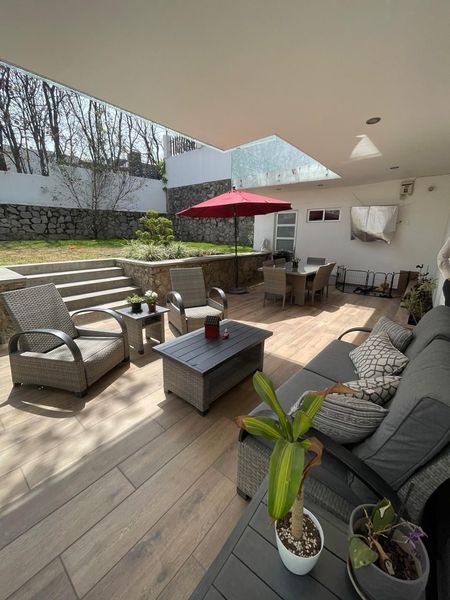 Amplia terraza con jardín, perfecta para reuniones y momentos al aire libre.