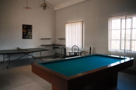 Salón de juegos con mesa de billar, ping pong y baño