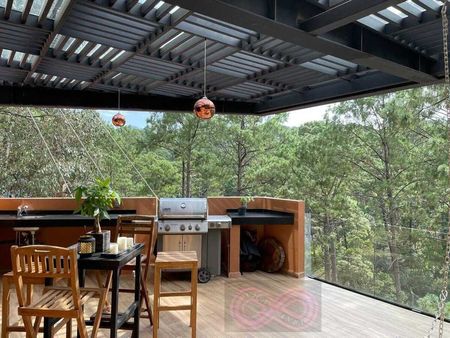 Construida en 2020, esta casa prácticamente nueva ofrece 670 m² de construcción, con una bodega, circuito cerrado de seguridad, dos cisternas, planta de luz, cuarto de servicio, y dos chimeneas que garantizan comodidad y funcionalidad. En la terraza, encontrarás un asador y un jacuzzi perfectos para el entretenimiento al aire libre.