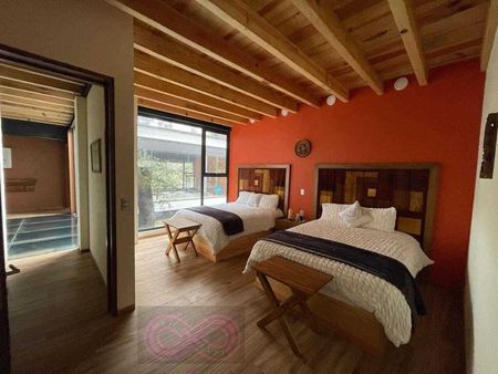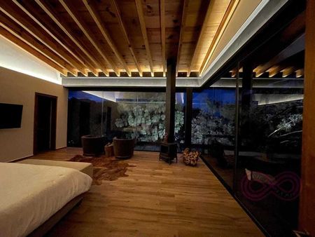 Disfruta de amplias áreas sociales con una elegante sala, un comedor acogedor y una cocina de lujo totalmente equipada. También cuenta con un cuarto de lavado, una cava privada, y espacio para cuatro autos en estacionamientos techados. Para los entusiastas de las motos o racers, hay un taller dedicado, y un tapanco que añade un toque distintivo a la propiedad.